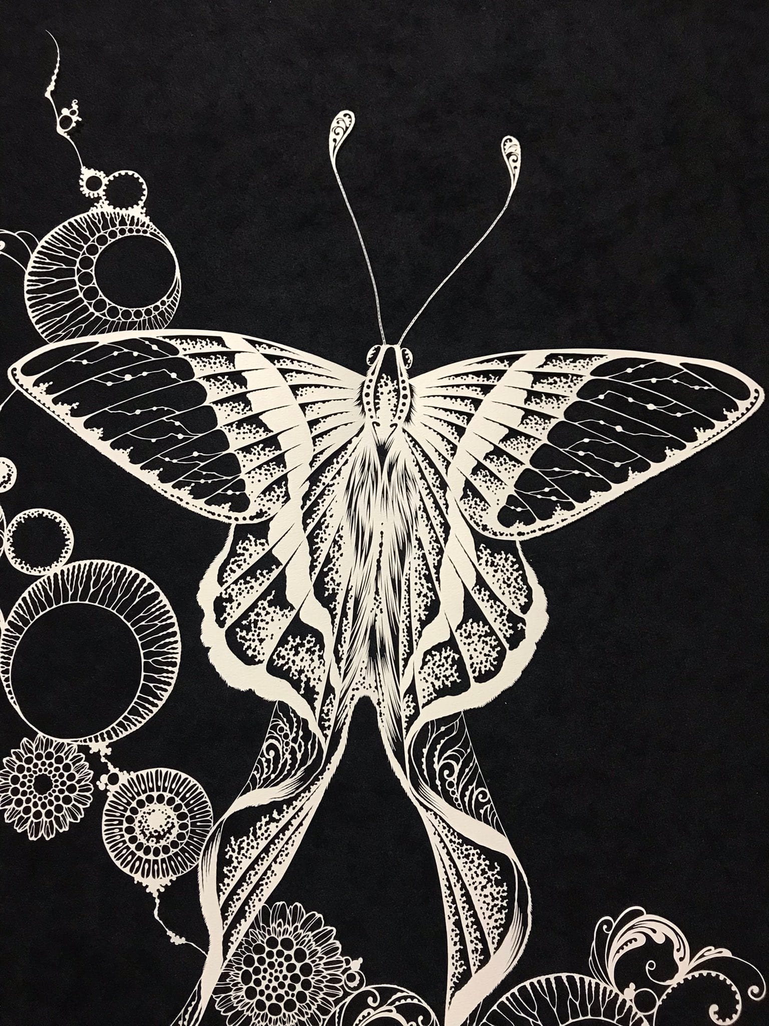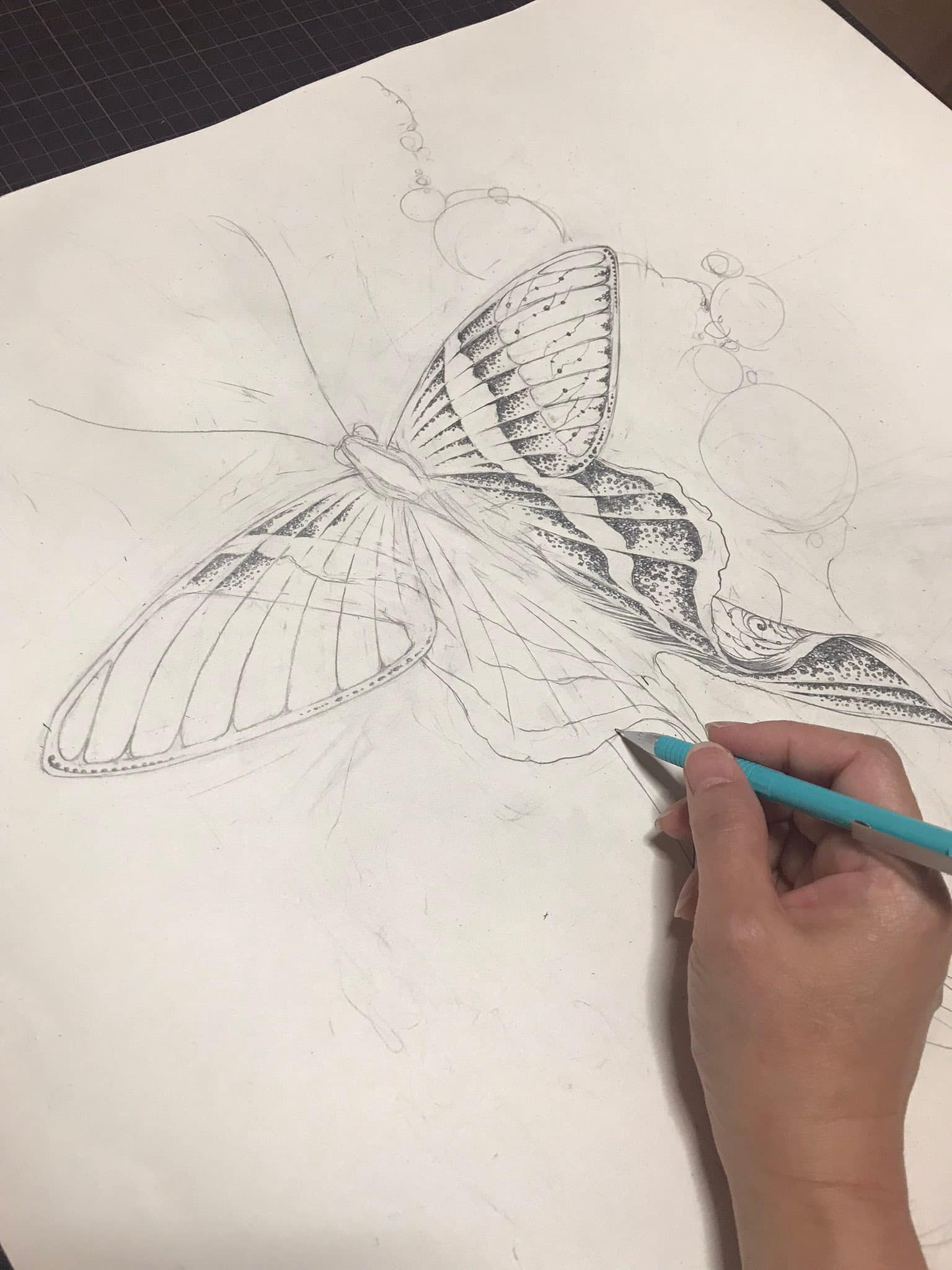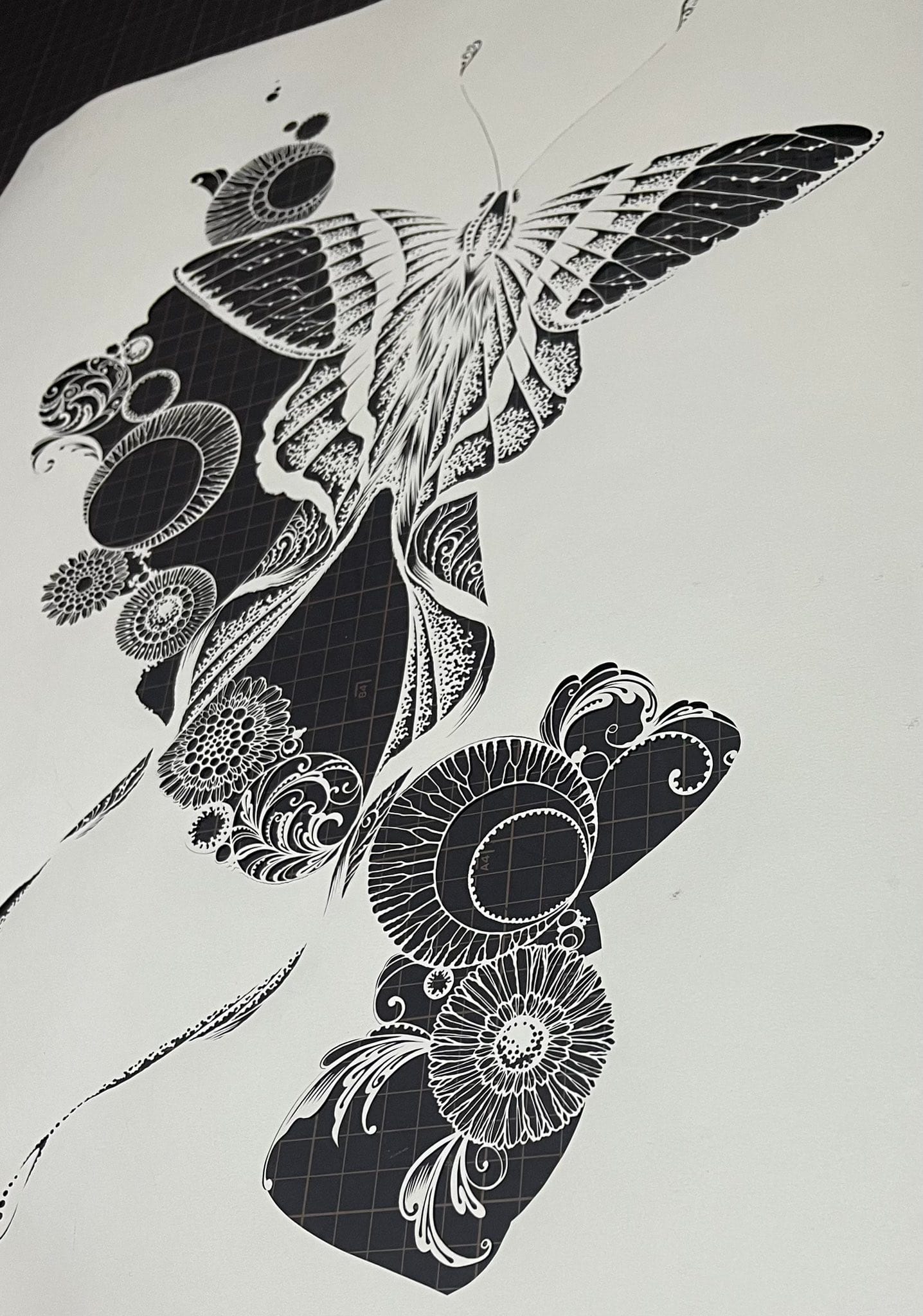 ある日、私は偶然見かけたスジアゲハの優雅さに心を打たれました。その美しさに感動し、いつか作品にしたいと考えていました。