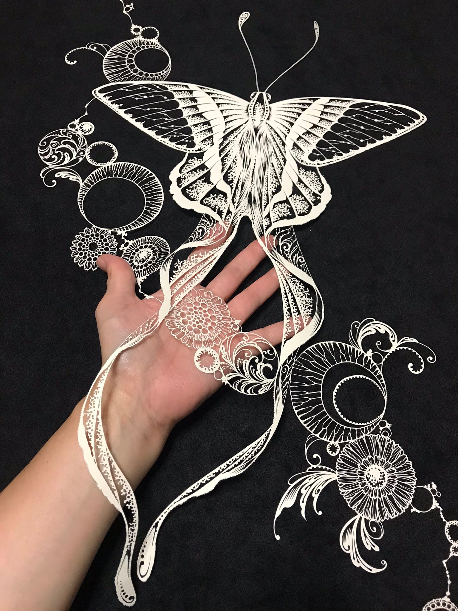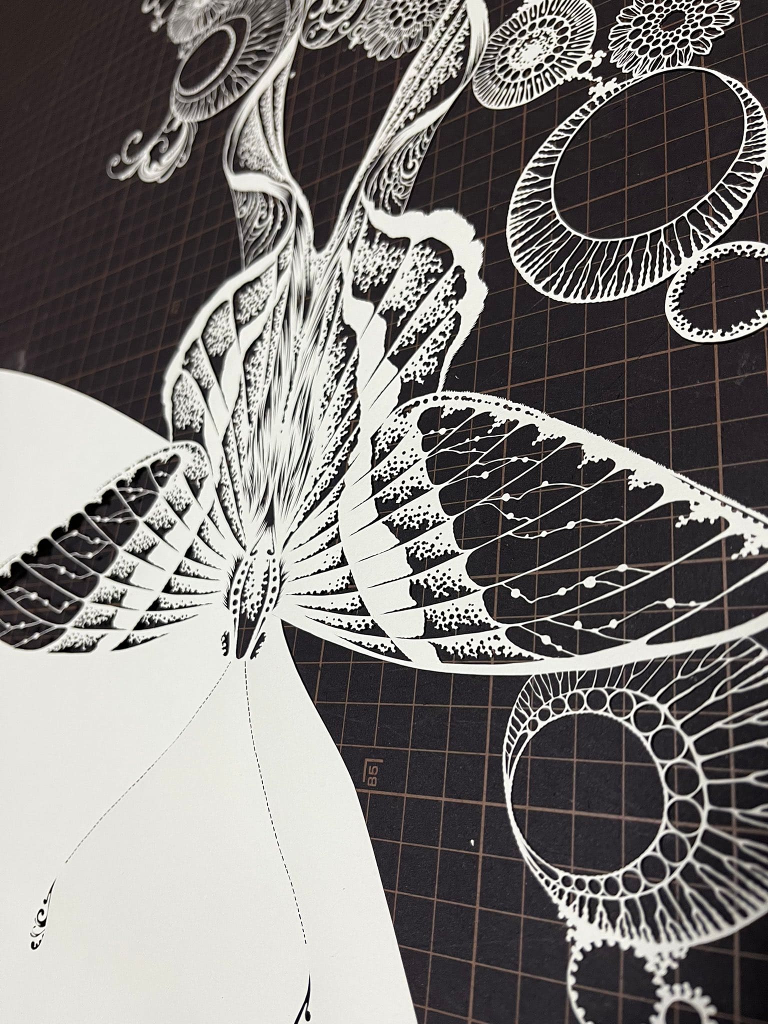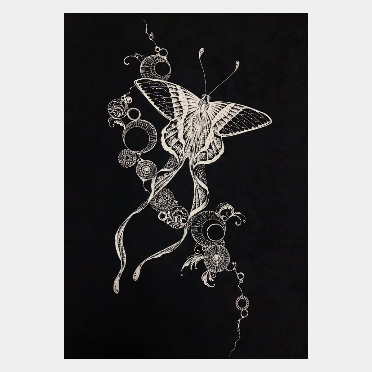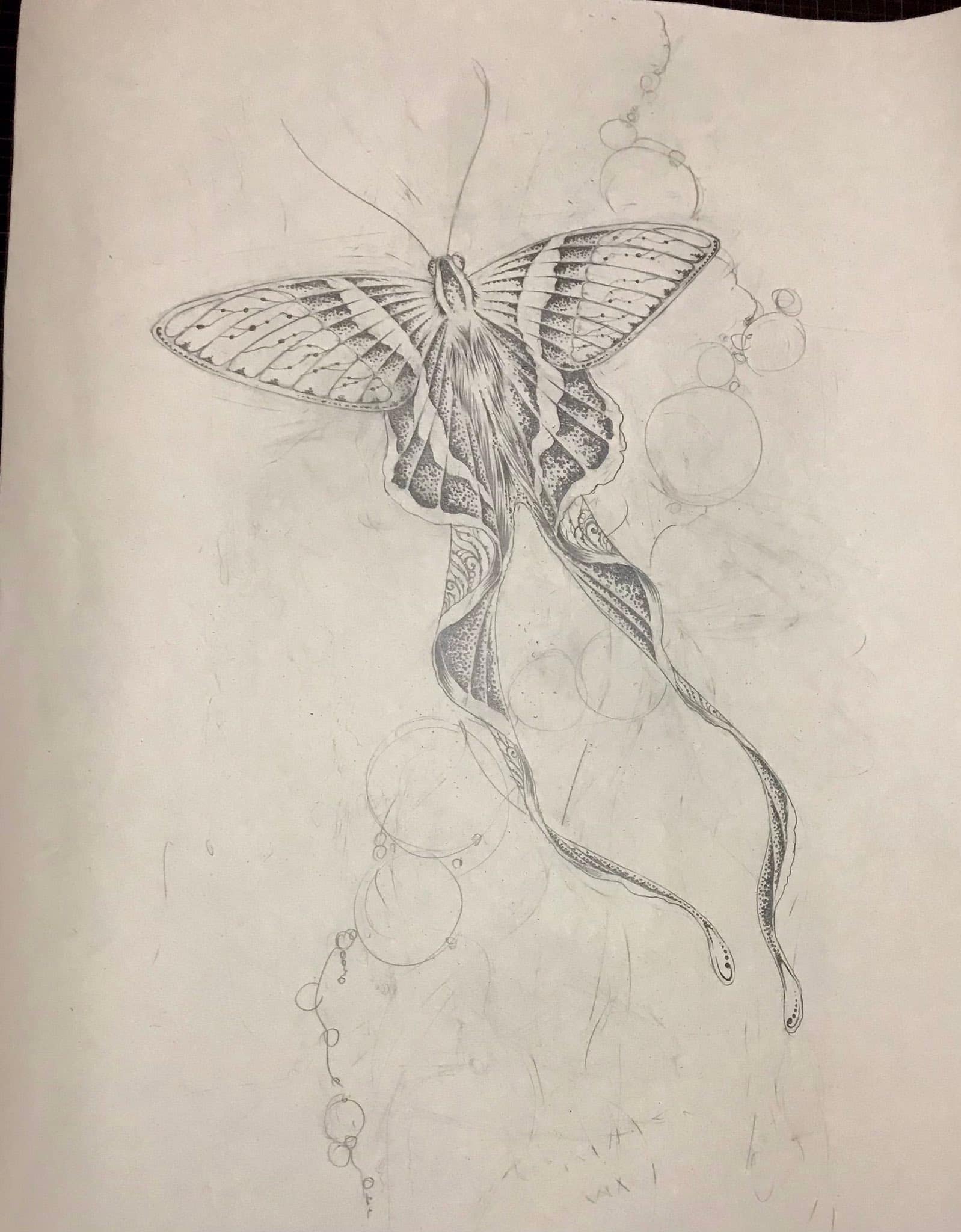 ある日、私は偶然見かけたスジアゲハの優雅さに心を打たれました。その美しさに感動し、いつか作品にしたいと考えていました。